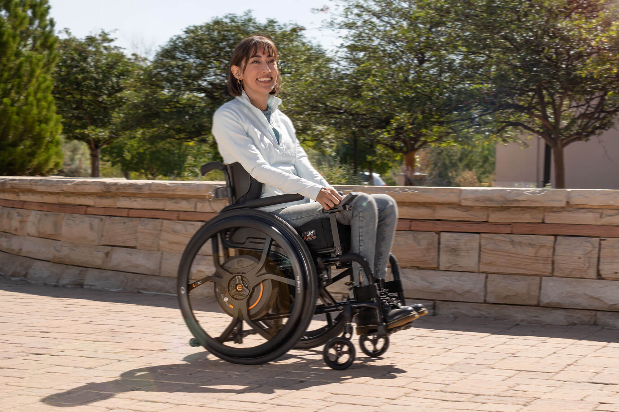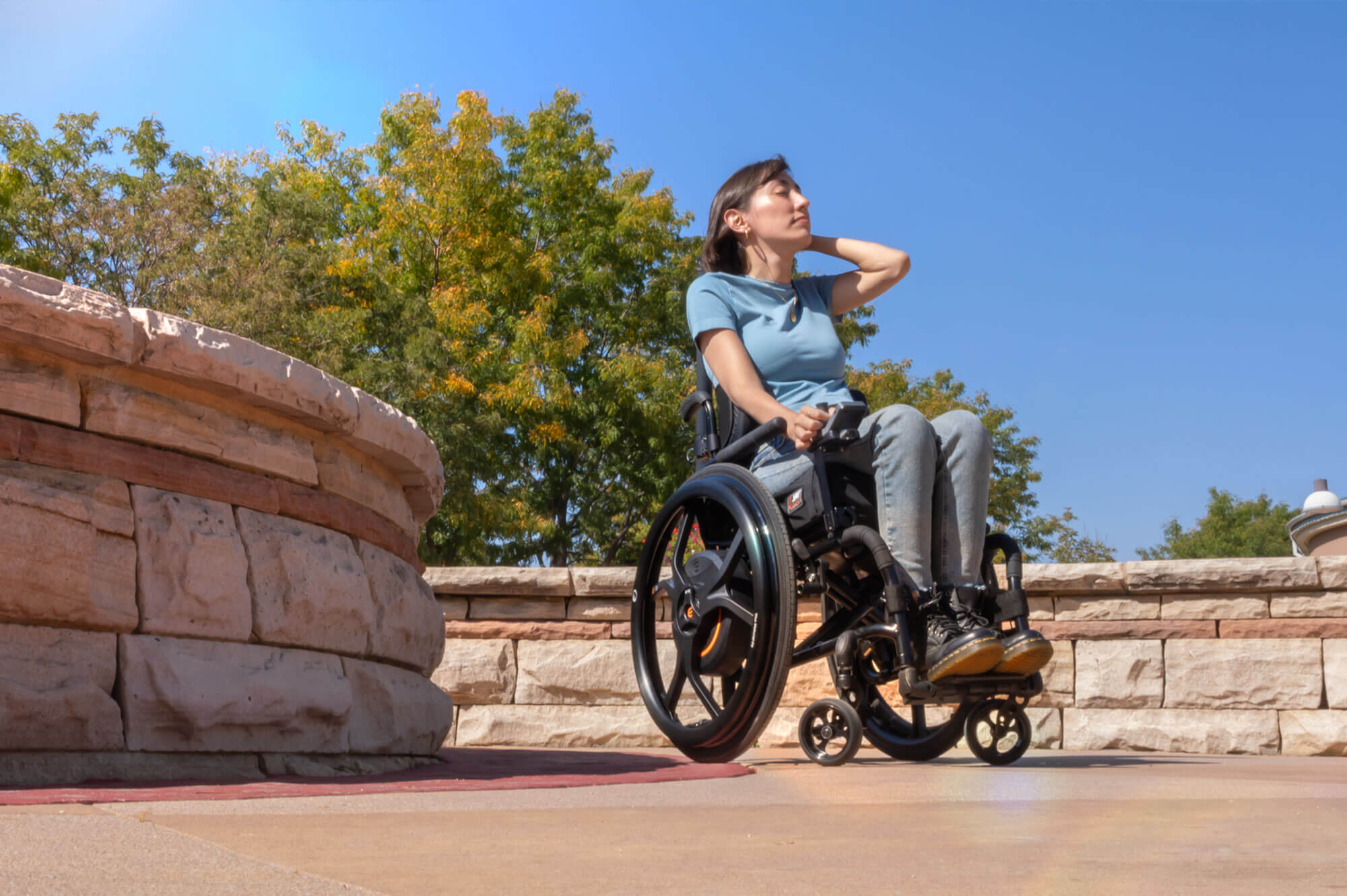 Profitez pleinement de votre M90 dès le premier jour. Utilisez l’application M90 lors de l’installation pour optimiser les performances selon votre profil et votre fauteuil. Choisissez le profil de conduite adapté à votre environnement – intérieur ou extérieur – grâce aux réglages prédéfinis de vitesse, de couple et de pente. Gardez le contrôle à tout moment grâce à l’affichage en temps réel du niveau de batterie, aussi bien pour la commande que pour les roues. Compatible avec Android™ et Apple® iOS,