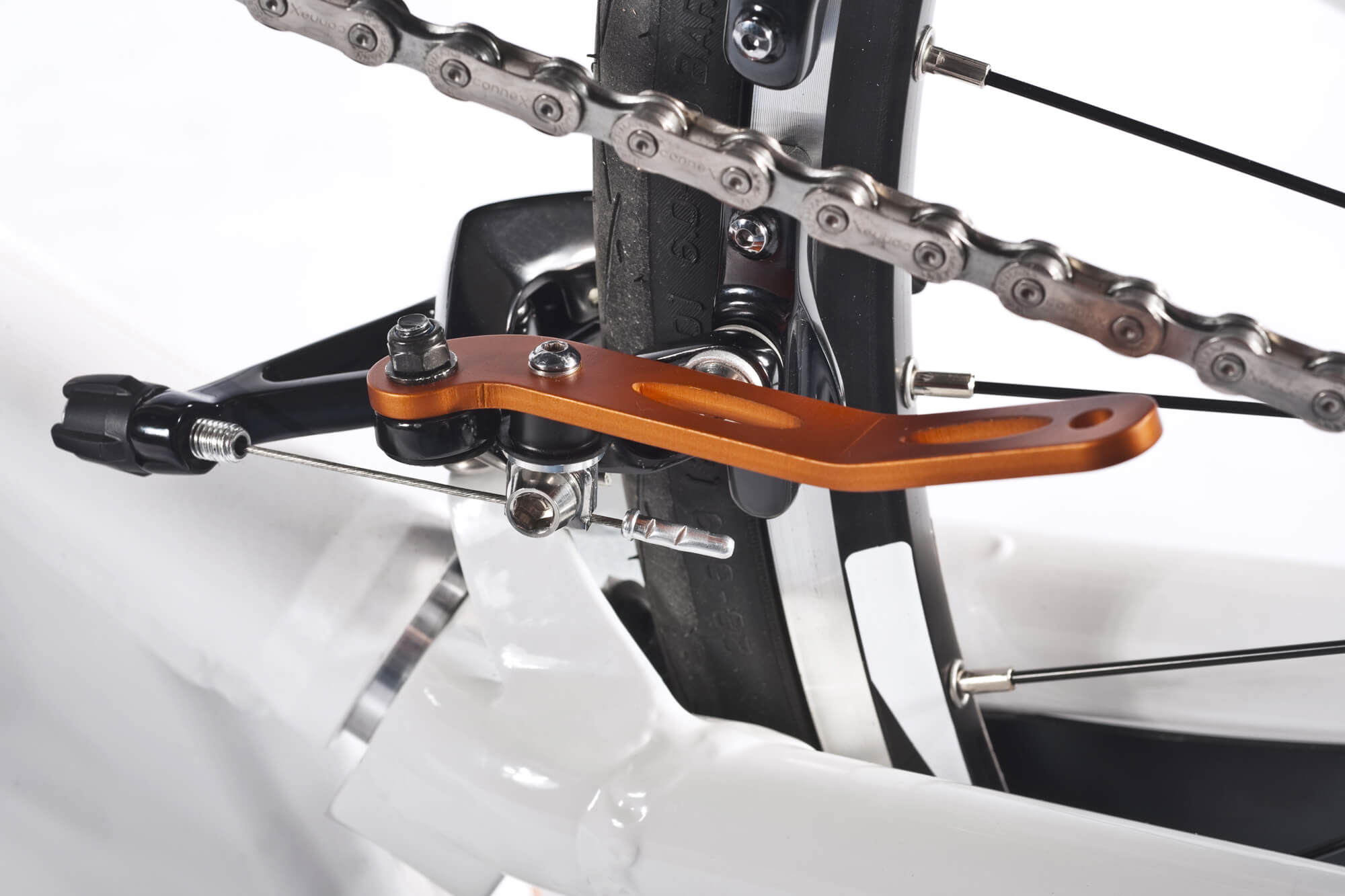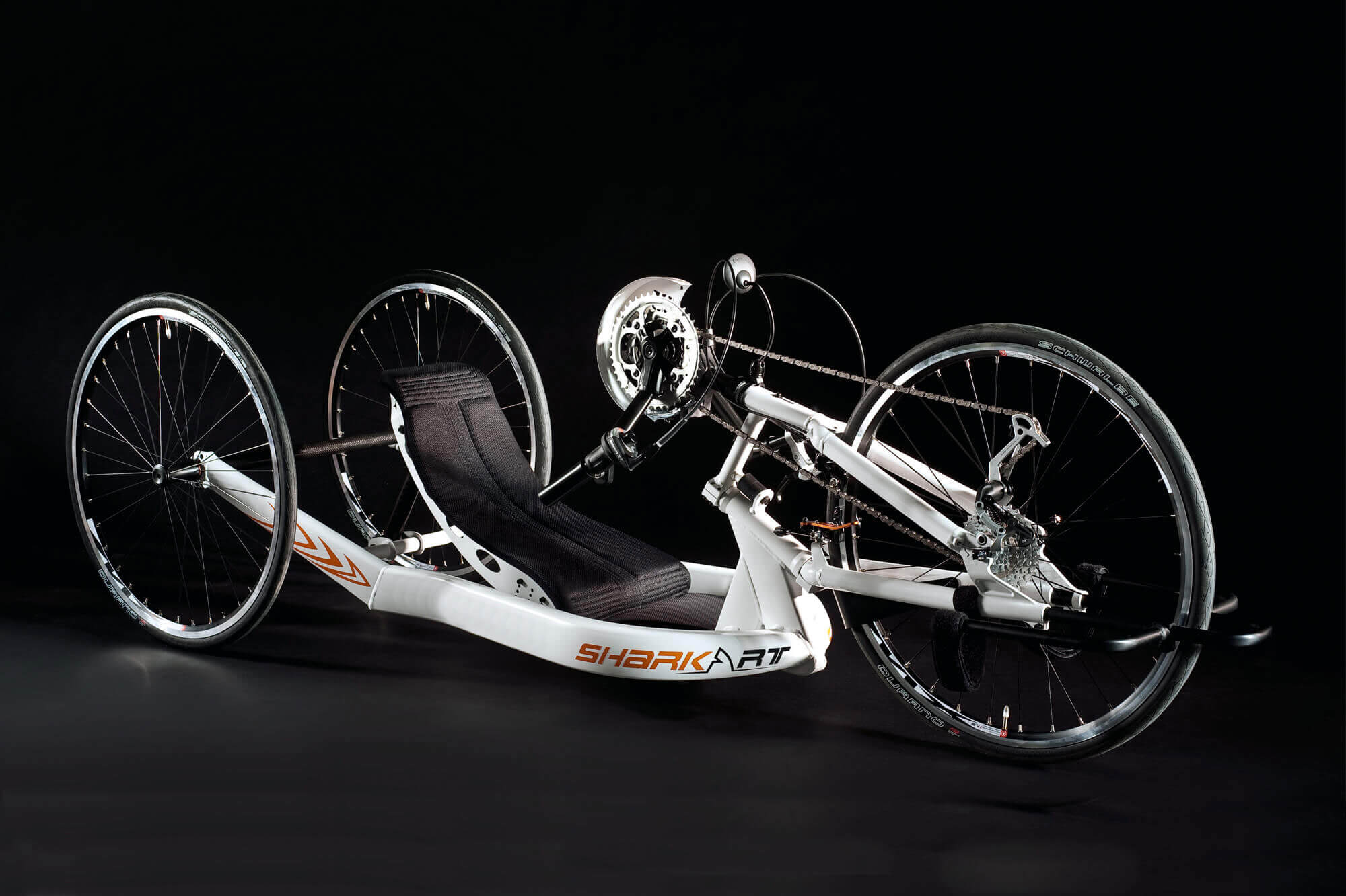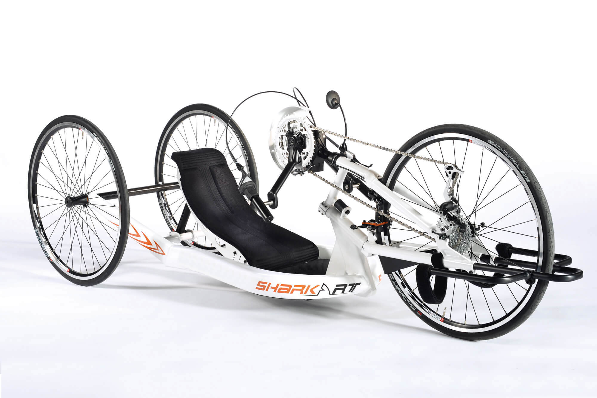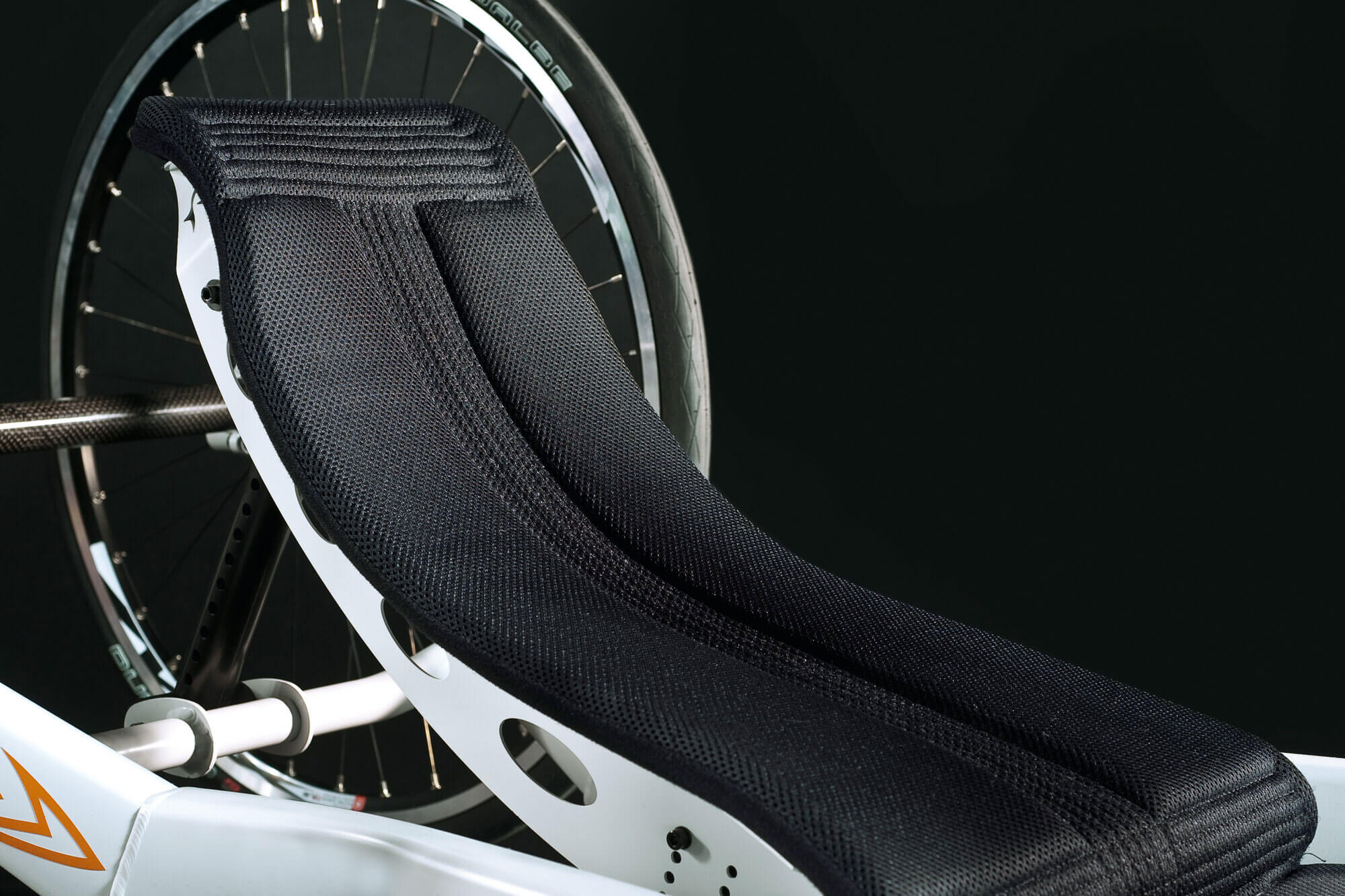 La jonction entre la structure et la fourche est très robuste. Ceci permet d'obtenir une réduction significative de la flexibilité, d'améliorer l'efficacité de propulsion et la performance globale du handbike.